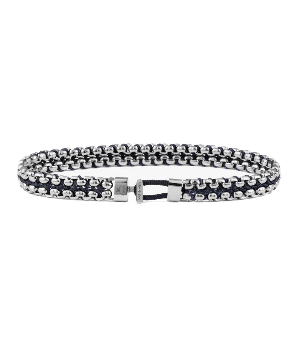 CATENA VENETIAN 7mm≪カテナ ベネチアン 7mm≫はカテナ ベネチアンの7mm幅で丸みを帯びたステンレス製のボックス型チェーンに細いロープを掛け合わせたチェーンブレスレットです。優雅で存在感あるデザインが手元を演出します。商品は木箱に入れてお届けします。